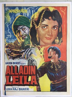 1957 Bollywood Poster ALLADIN LEILA – Mahipal Shakila 30in x 40in