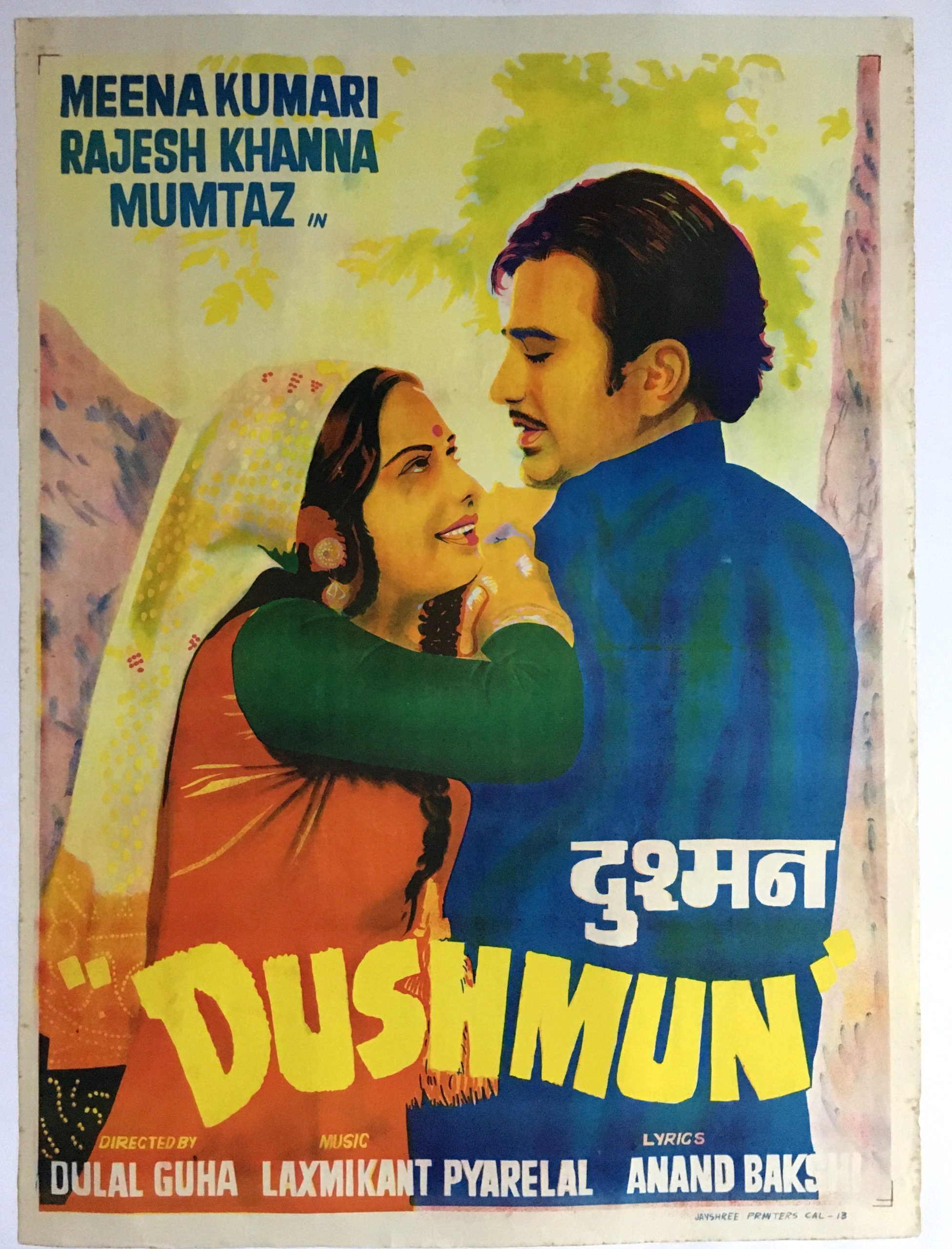 A Vintage Bollywood Poster of the Movie “DUSHMUN ” starring Meena Kumari and Rajesh Khanna