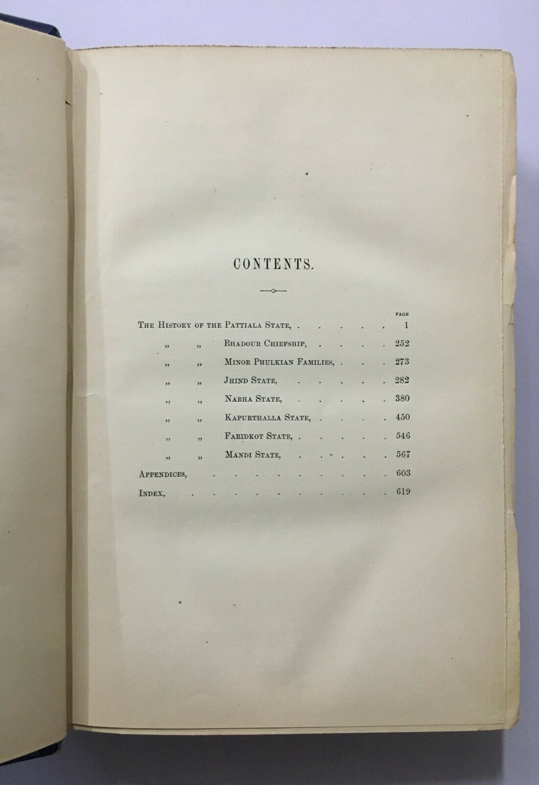(History Of The Patiala State, Bhadour Chiefship, Minor Phulkian Families, Jhind State, Nabha State, Kapurthala State, Faridkot State, Mandi State.)